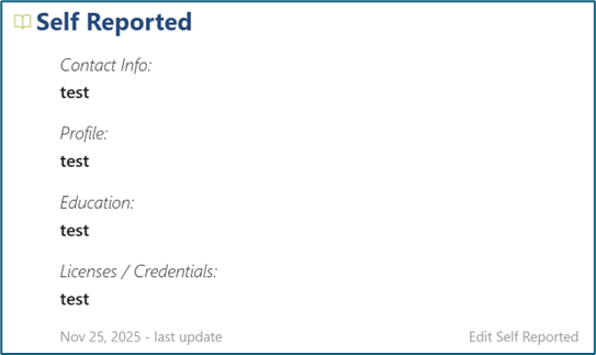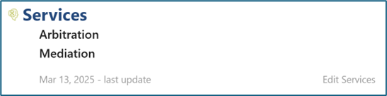 A space where the legal professional may report information about themselves for public viewing. Includes data like: