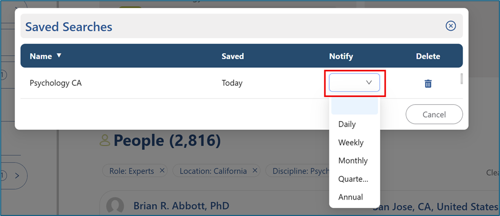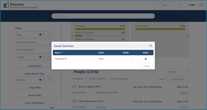This article will explain how to save a search in the CI Directory, return to a saved search, delete a saved search, and set up search notifications.