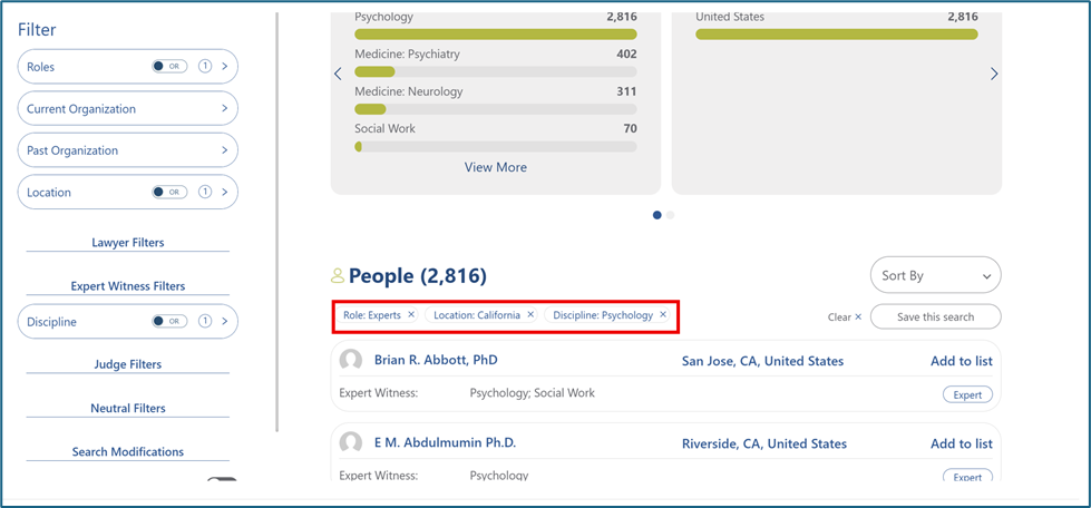 Select the filters you want or type a keyword into the search bar.