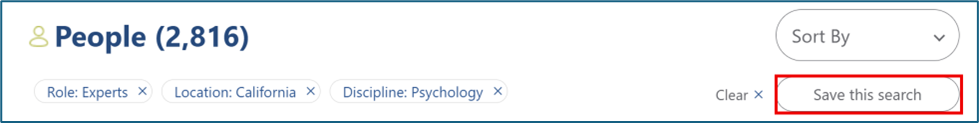 Click “Save this search” on the right side of the screen under “Sort By”.