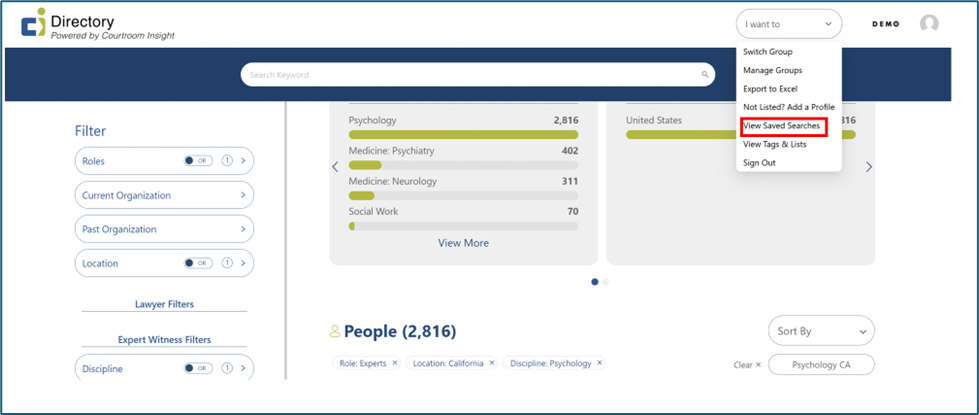 To find your saved searches later, open the “I want to” drop-down menu at the top of the screen and select “View Saved Searches.”